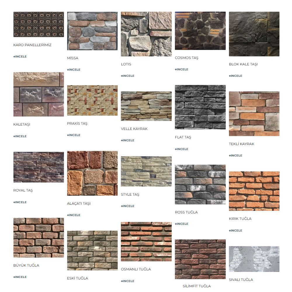 Türkiye de üretilen duvar kaplama fiber glas taş panel ve dekoratif tuğla ve taşlarımızla siz değerli müşterilerimize sunmaktan onur duyarız.