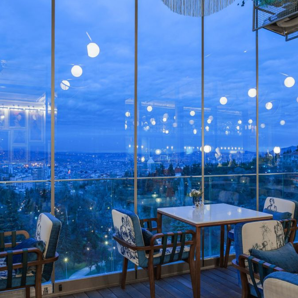 İç tasarımda sonsuzluğu simgeleyen bronz detaylar ve kuleyi merkez alarak gün ışığını davet eden dışa açık mimari; Atakule’de misafirlerimize; kendini açık havada hissettirir.