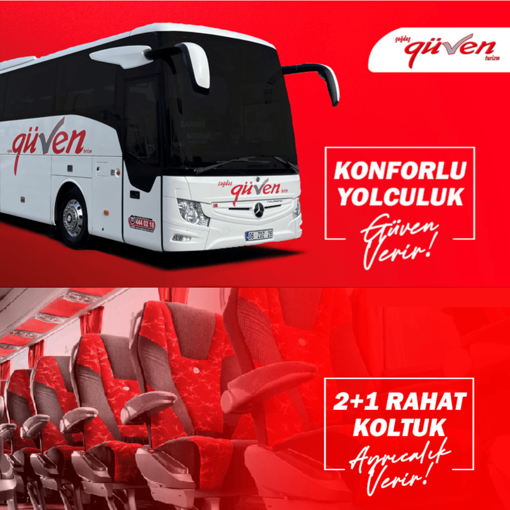 Firmamız 1998 yılından beri, Çağdaş Güven Yer Hiz. Turizm Seyahat Nakliyat Taş. İth. ve İhr. Tic. Ltd. Şti. ünvanı ile en kaliteli, en hızlı ve en güvenilir hizmeti vermekte olup, genç, dinamik ve eğitimli kadrosuyla sektörde kendini kanıtlamıştır. Çankırı - Ankara - İstanbul, Kastamonu - Ankara, Kastamonu - İstanbul arası hizmet veren firmamız, müşterilerine huzur dolu güvenli yolculuklar sunmaktadır. Çağdaş Güven Şti olarak, amacımız siz değerli müşterilerimize yapacağınız seyahatlerde maksimum konfor ve hizmeti sağlamaktır. Sizlere her konuda yardımcı olan güleryüzlü kadromuz, gelişen teknolojiye uygun konforlu ve güvenilir araçlarımızla, sizlerden aldığımız destekle müşteri memnuniyetini ilke edinerek uzun yıllar hizmete devam etmekten mutluluk duyacağız.
