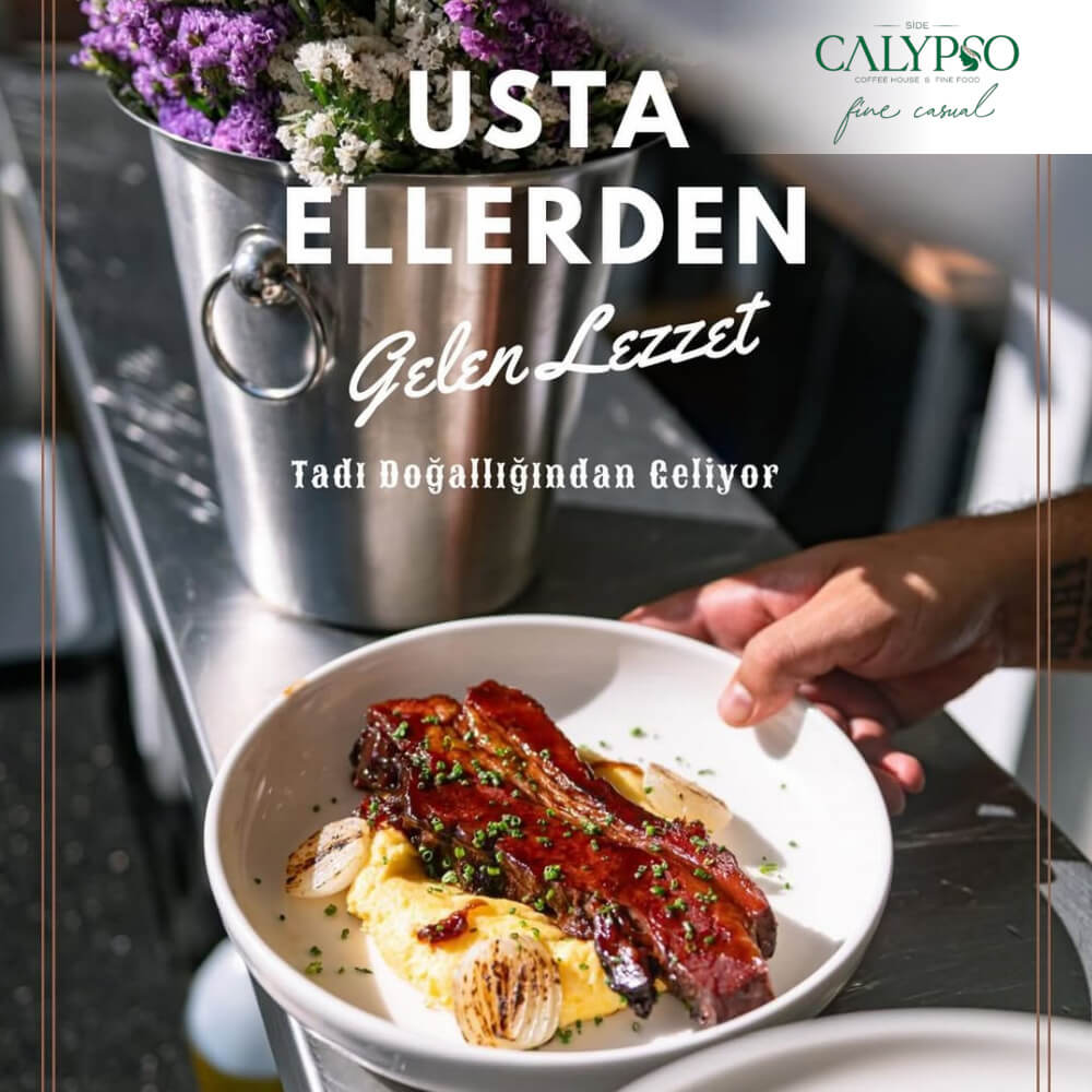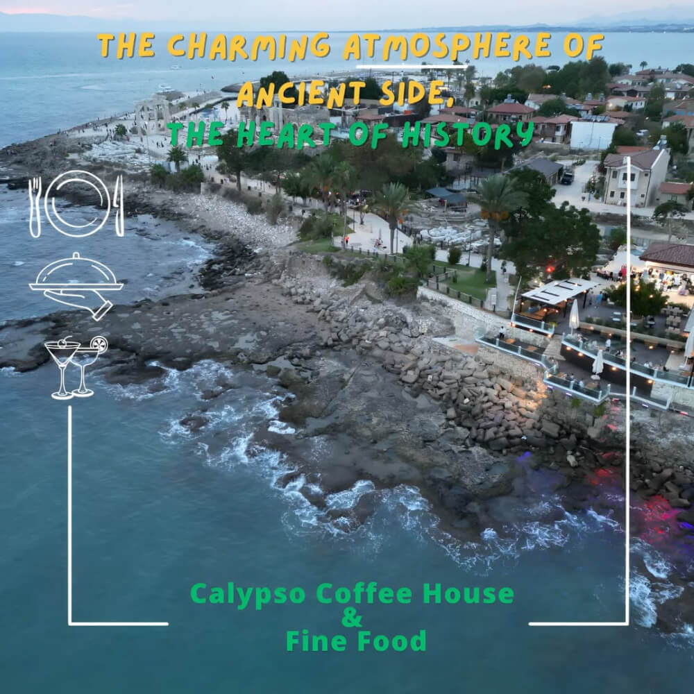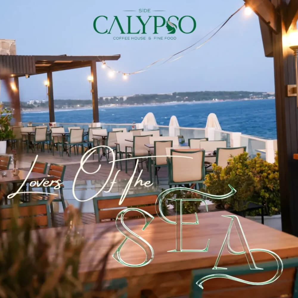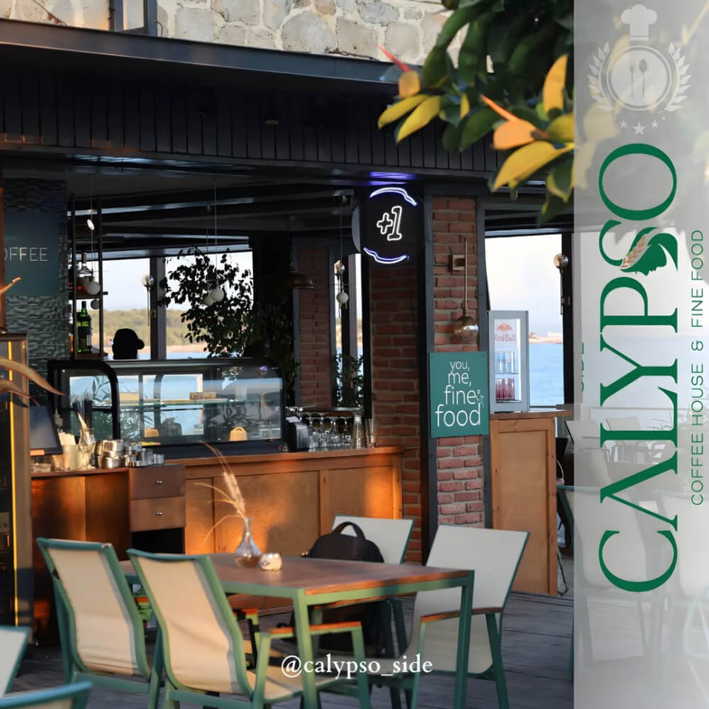 Antik Side’nin büyüleyici atmosferinde yer alan Calypso Coffee House & Fine Food olarak, sizi eşsiz bir lezzet yolculuğuna çıkarıyoruz. Tarihin kalbinde modern bir dokunuşla sunulan zengin menümüz ve yaratıcı kokteyllerimizle, her anı unutulmaz kılmak için buradayız. Deniz manzarasının tadını çıkarırken, taptaze malzemelerle hazırlanan gurme yemeklerimizi ve özgün içeceklerimizi keşfedin. Sizlere hem tat hem de göz zevkinize hitap eden bir deneyim sunuyoruz.