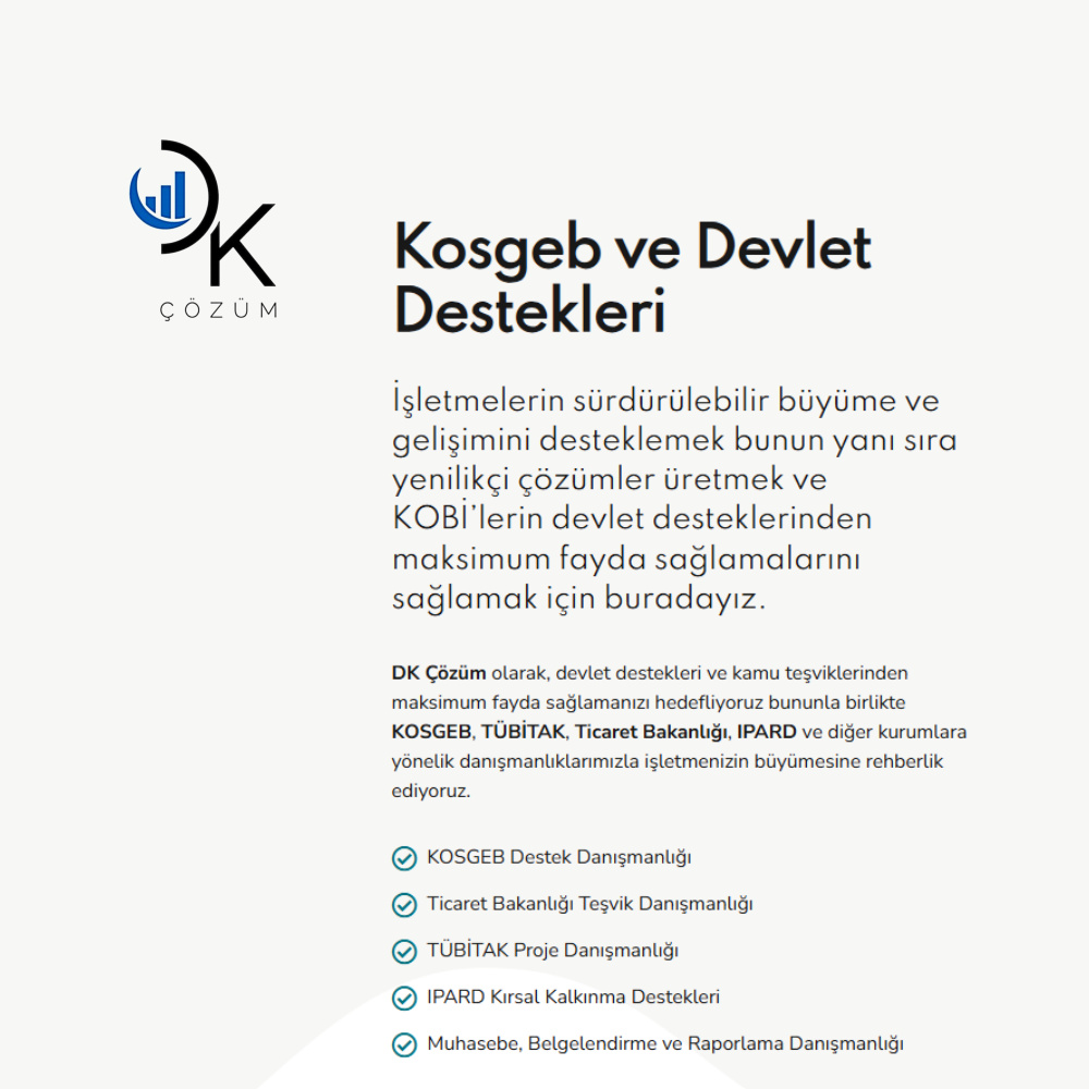 Girişimcilerin, KOBİ’lerin ve yatırımcıların devlet desteklerinden en etkili şekilde faydalanmalarını sağlamak amacıyla kurulmuş, KOSGEB ve kamu destekleri alanında uzmanlaşmış bir danışmanlık şirketidir.