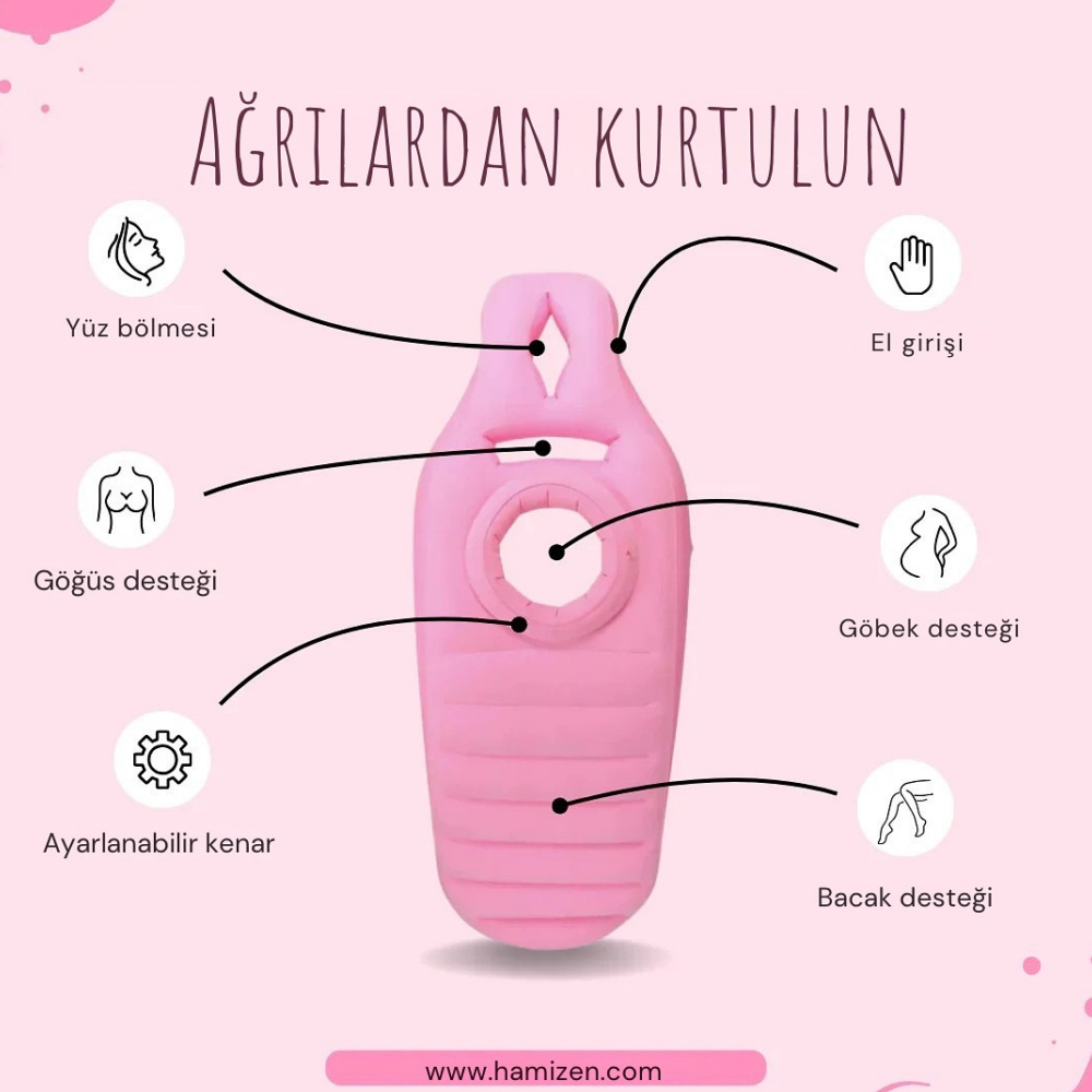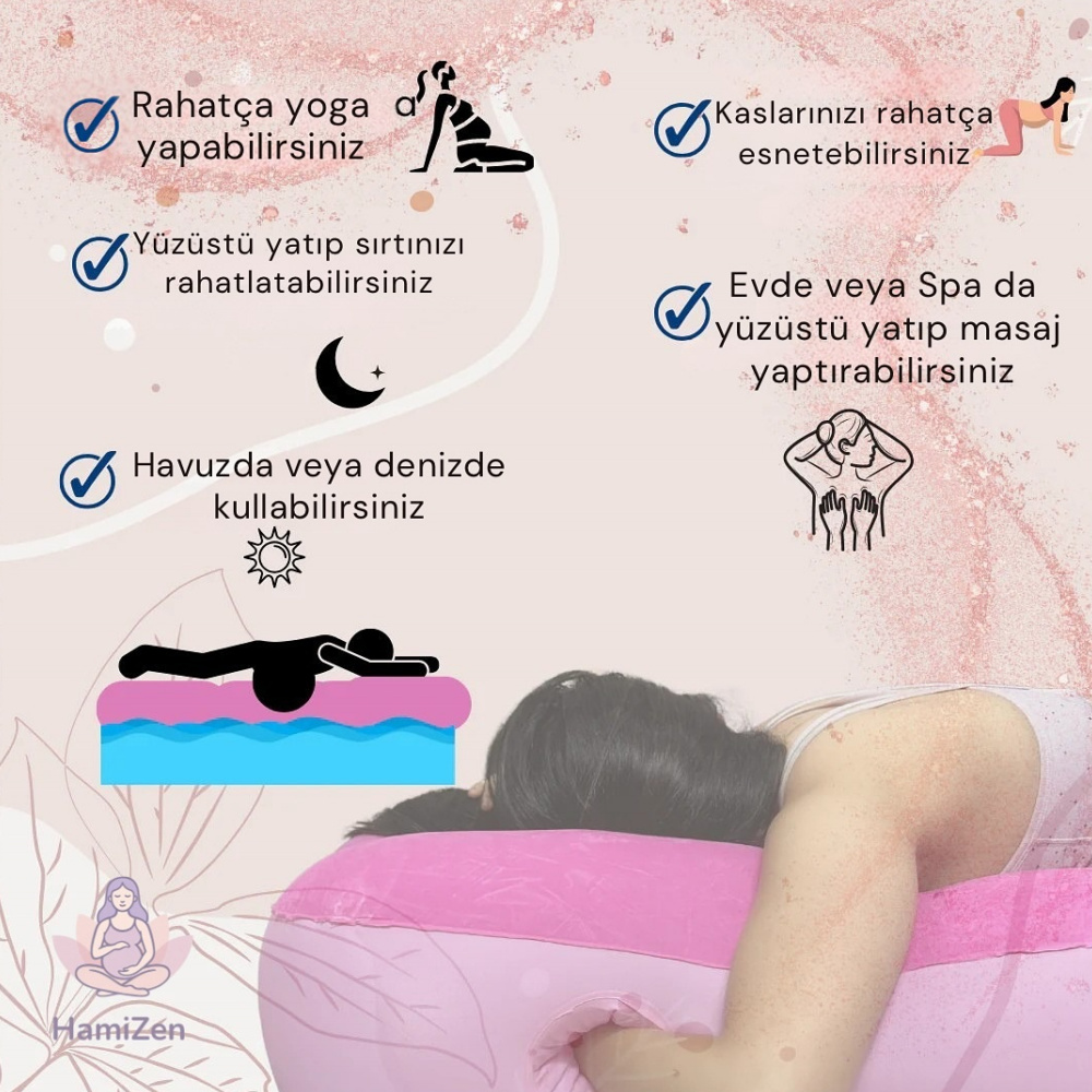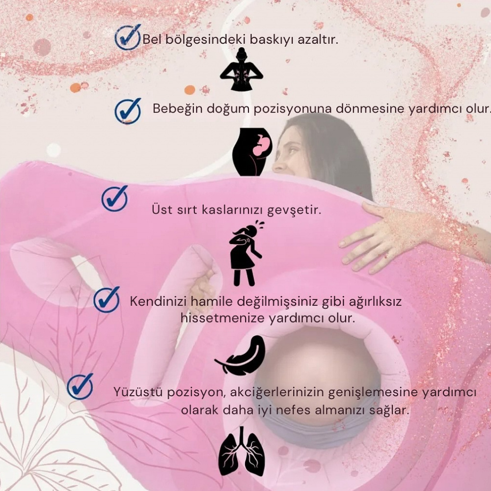 Göbeğe ve göğüslere baskı olmadan yüzüstü yatabilmeniz için tasarlandı.