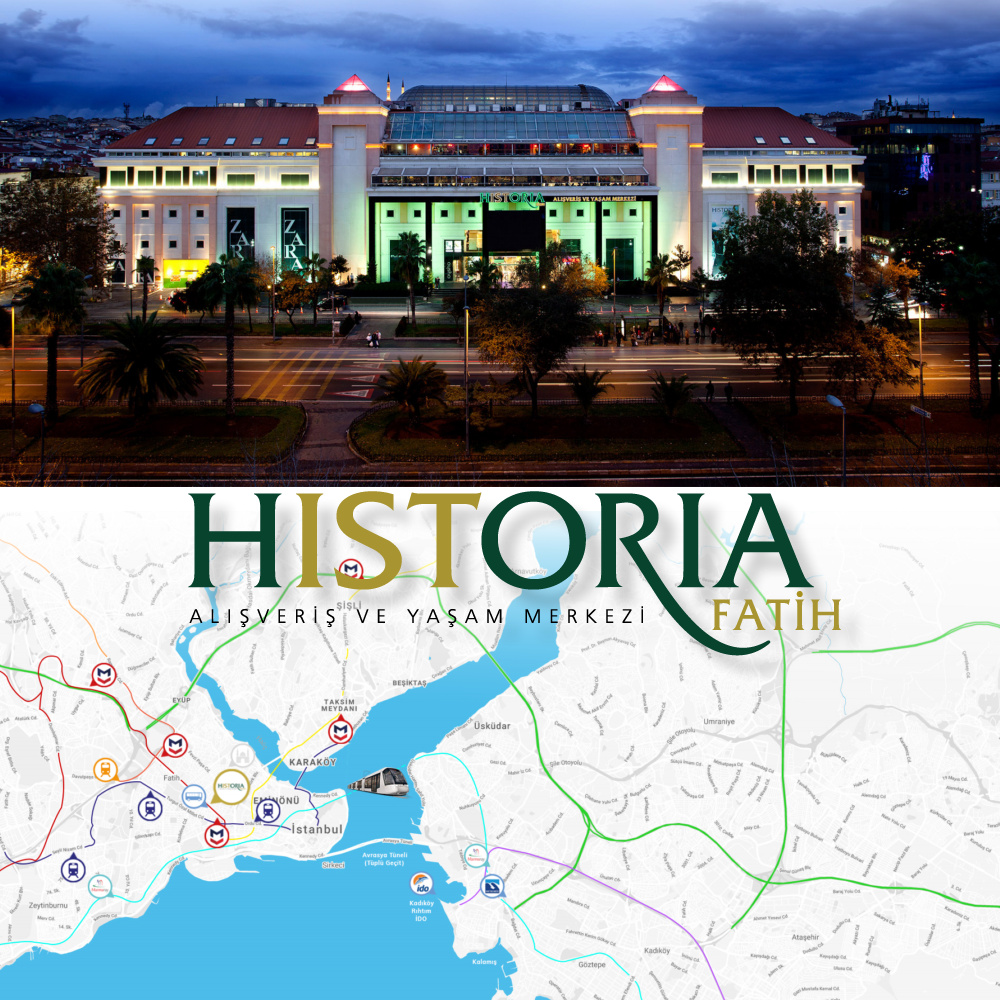 Yarımada'nın tarihi dokusuyla bütünleşen atmosferi ile moda, lezzet ve eğlenceyi bir araya getiren Historia Fatih Alışveriş ve Yaşam Merkezi, gün ışığını içeriye alan cam kafes tavanı, giriş katındaki fıskiyeli havuzu ve açık hava imkanı sunan kafeleriyle ziyaretçilerine; aydınlık, ferah bir alışveriş ortamı sunuyor. Historia'da giyim ve aksesuardan ev dekorasyonuna, kafelerinden teknoloji ve gıda marketlere kadar geniş bir yelpazede hizmet veriyor. Herkesin beğenisine uygun yeme-içme alternatiflerinin bulunduğu Historia'da oto yıkama, lostra, eczane, terzi, kuru temizleme ve mescit gibi hizmetler sunuluyor. 8 salonlu Cinemaximum Sineması, bowling ve çocuk oyun alanları ile zaman zaman gerçekleştirilen defileler, konserler, çocuk etkinlikleri, imza günleri büyük ilgi görüyor. Historia'da dış ülkelerde yaşayanlara alışveriş vergilerinin geri ödendiği Tax Free noktası bulunuyor.