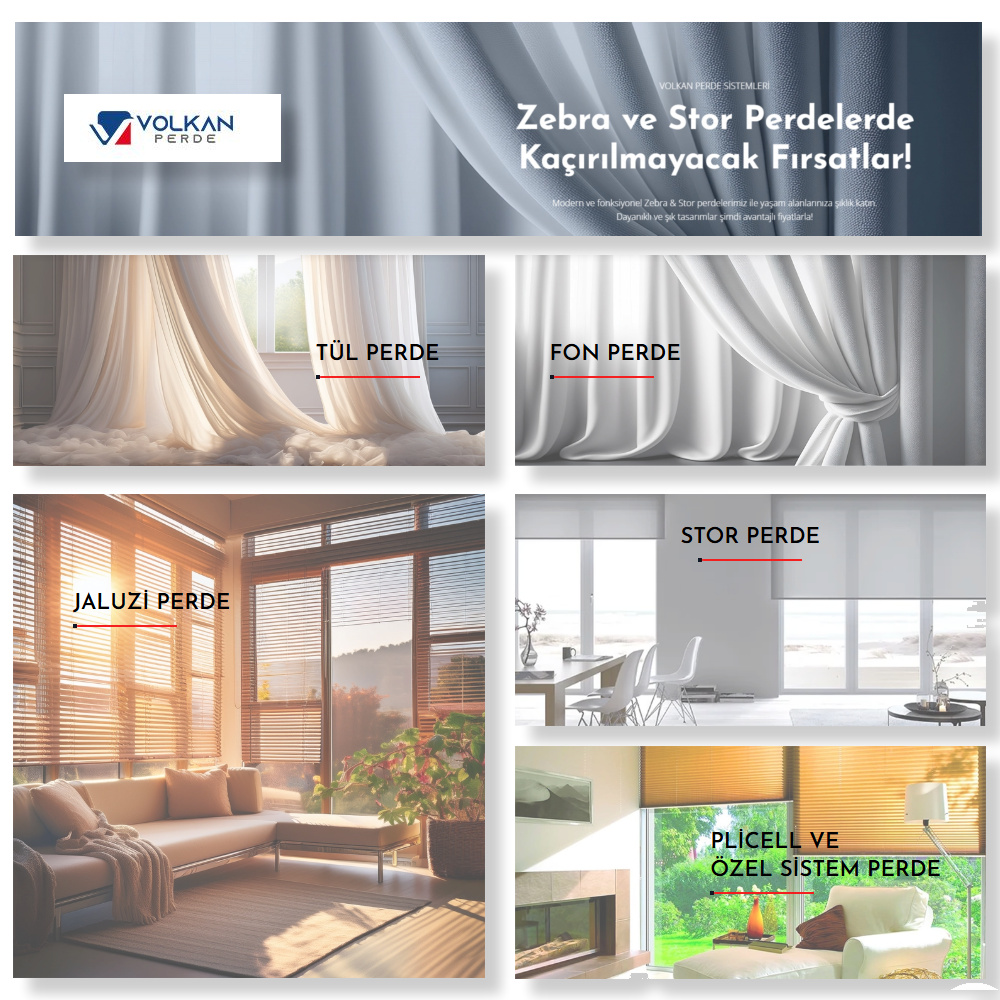 VOLKAN PERDE, ev ve ofis dekorasyonunda şıklığı, işlevselliği ve kaliteyi bir araya getiren modern perde çözümleriyle sektörde kendine sağlam bir yer edinmiş köklü bir markadır. Kuruluşundan bu yana müşteri memnuniyetini en üst düzeyde tutmayı amaçlayan firmamız, perde sektöründe edindiği deneyim ve güvenilirliğiyle binlerce yaşam alanında fark yaratmıştır.