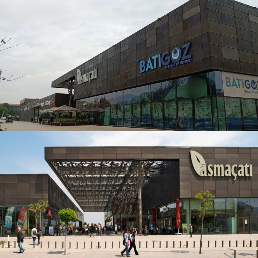 İzmir Balçova’da bulunan Asmaçatı AVM, İzmir’in en uzun cadderinden biri olan Mithat Paşa Caddesi üzerinde toplu taşıma ile kolayca ulaşılabilen bir konumdadır. 2 Kat üzerine inşa edilen alışveriş merkezi mimari yapısı ile oldukça dikkat çekmektedir. Konsept olarak `çardak` tan yola çıkan avm bina mimarisi oldukça başarılıdır.