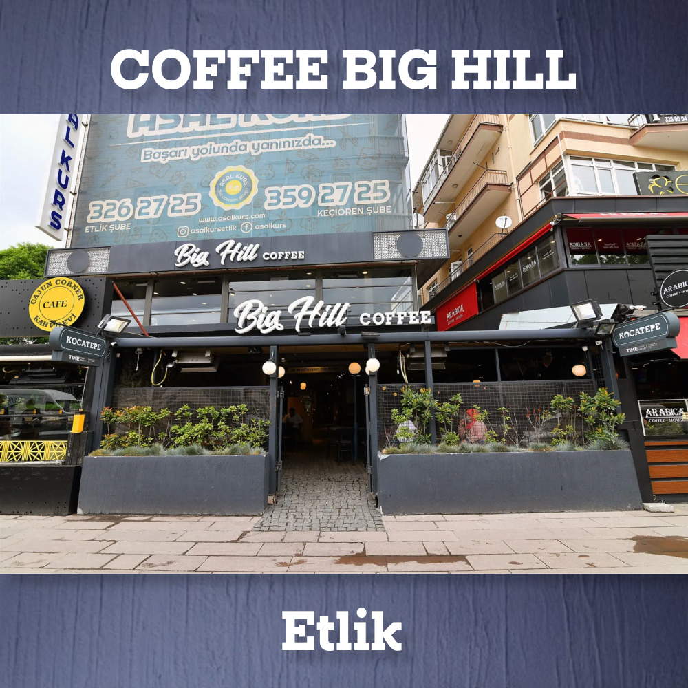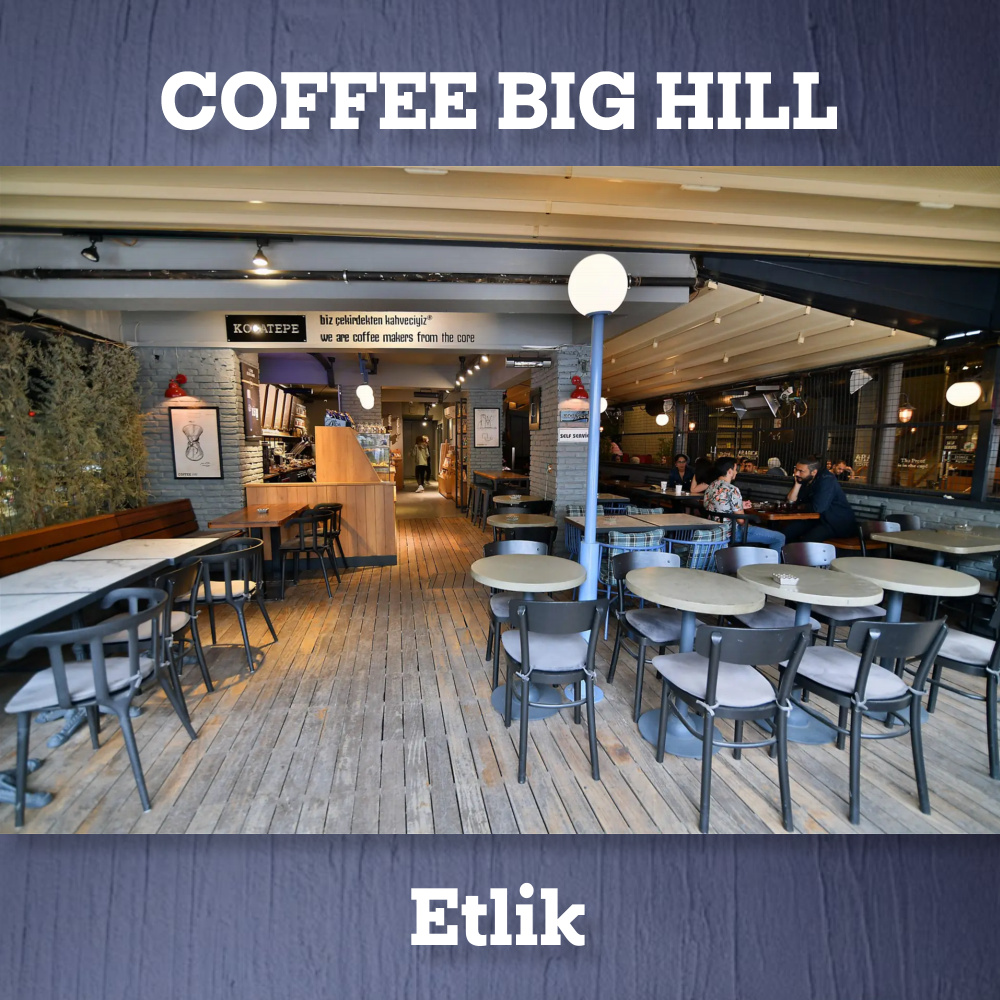 Mimari tasarımı ve zengin yiyecek çeşitleriyle Coffee 1919’a benzer bir çizgiye sahip olan Coffee Big Hill, daha rekabetçi fiyat politikasıyla fark yaratır. Küçük ve büyük bardak boyutları ile litrelik kahve satışları, geniş kitlelere hitap eden bir anlayışı destekler.