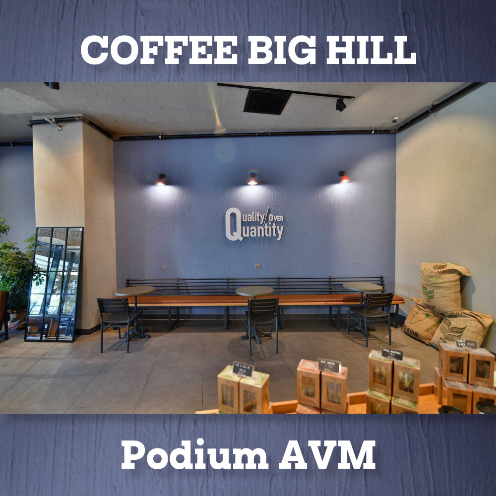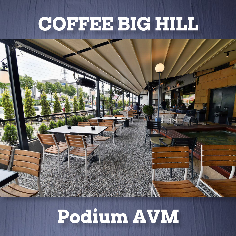 Mimari tasarımı ve zengin yiyecek çeşitleriyle Coffee 1919’a benzer bir çizgiye sahip olan Coffee Big Hill, daha rekabetçi fiyat politikasıyla fark yaratır. Küçük ve büyük bardak boyutları ile litrelik kahve satışları, geniş kitlelere hitap eden bir anlayışı destekler.