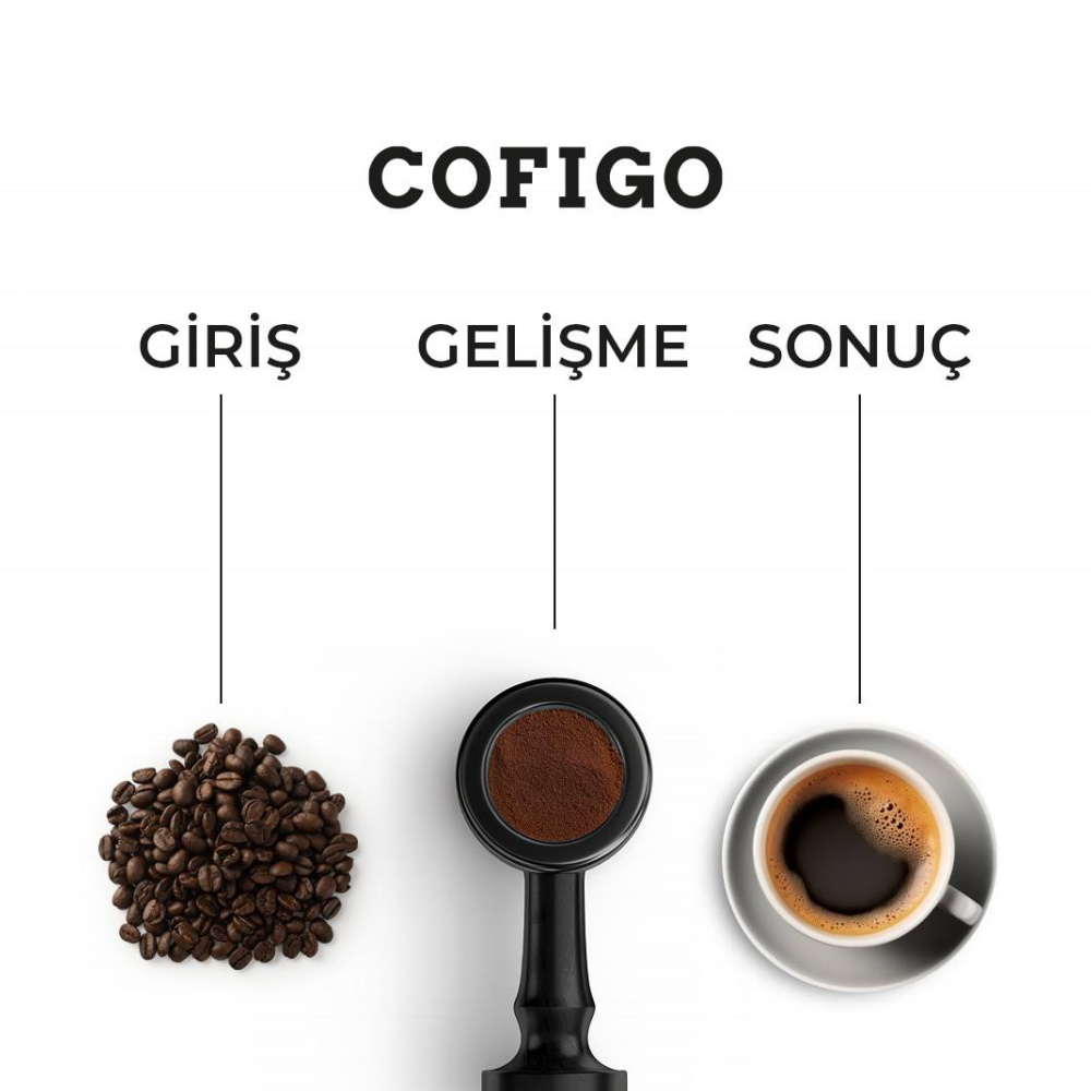 Yeni nesil tam otomatik makinelerle çalışan Cofigo, kalifiye eleman ihtiyacını ortadan kaldırır ve ürün standardizasyonunu tamamen çözer. Bu özellikleriyle yönetimi kolay kahve evi konseptlerinden biri olarak öne çıkar. Menüsünde hızlı tüketim için tasarlanmış donut, berliner, günlük hazırlanan bagel sandviçler, unlu mamuller ve pratik içecek seçenekleri yer alır. Bu ürünler, hareket halinde olan misafirler için ideal bir çözüm oluşturur.