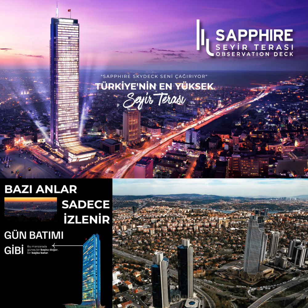 İstanbul’un Manhattan’ı Levent’te yer alan Türkiye ve Avrupa’nın en yüksek binalarından olan Sapphire Seyir Terası, farklı konseptiyle baş döndürücü, göz kamaştırıcı bir tecrübe sunuyor.
