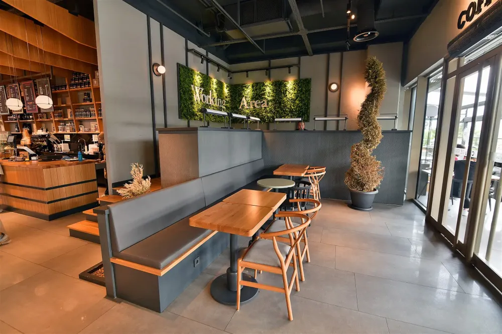 700 m²’den küçük alanlara uygun olmayan, geniş bir mekân anlayışıyla tasarlanan Coffee 1919, bulunduğu her yerde fark yaratarak dünyanın en büyük kahve evi markalarından biri olma hedefiyle ilerler. Doğal masif mobilyaları, nefes alan sıvamaları, doğal zemin malzemeleri ve pastel renkleriyle misafirlerine hem şık hem de huzurlu bir atmosfer sunar. Coffee 1919, uzaktan bakıldığında dahi bir bahçenin içinde yer alan sakin bir vaha hissi yaratır.