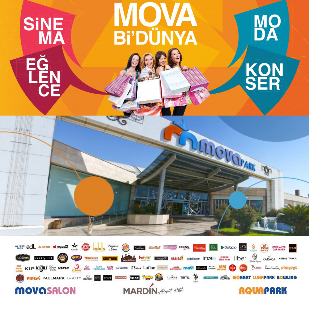 Mardin ile Kızıltepe arasında, Mardin Havaalanı’nın hemen yan tarafında bulunan Mova Park Alışveriş Merkezi, bünyesinde bulunan Aquapark, Otel, Mağazalar, Kafe-restoranlar, Sinema, Oyun ve eğlence alanları ve çok amaçlı Toplantı salonlarıyla bölgenin yeni yıldızı olmuştur.