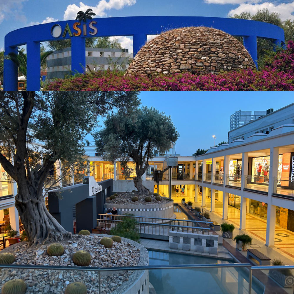 Konserlerimizi, çeşitli etkinliklerimizi yaptığımız Oasis bütününün odak noktası Gösteri Alanı, geleneksel Bodrum köy düğünlerinin, toplantılarının yapıldığı meydanlardan esinlenilmiştir. Taş Avlu, Anadolu hanlarının mimari dokusunu taşımaktadır. Restoranların, kafelerin bulunduğu Kare Avlu ise Kültür Merkezi ve sinemaların açıldığı bir açık hava fuayesi konumundadır. Tüm açık alanlarımıza, Bodrum evleri gibi kareler, dikdörtgenler, küreler, prizmalar, daireler, tentelerimize, "Bodrum Pazarları" esas oluşturmuştur.