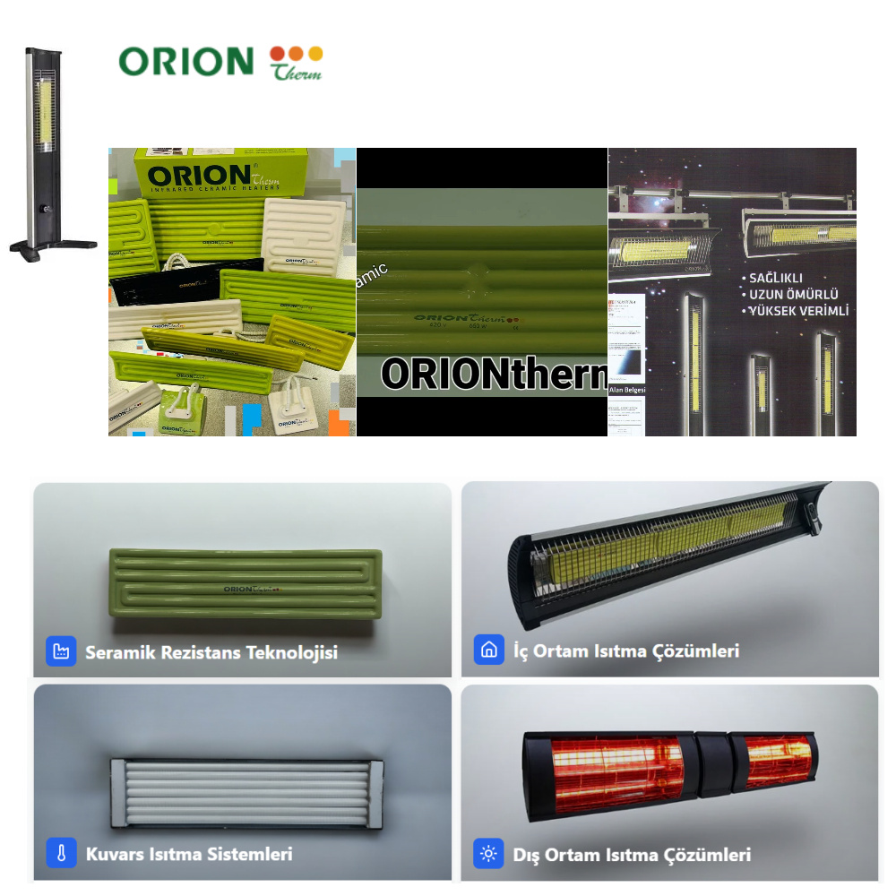 Orion Rezistans Teknoloji Ürünleri Sanayi Ticaret Limited Şirketi, FAR INFRARED SERAMİK ISITICILARIN Türkiye’deki tek üreticisi olmakla birlikte ,ürünlerindeki kalite ve özelliklerindeki farklılıklardan dolayı dünyadaki rakiplerinin yanında yer alarak dünya pazarında adını duyurmuşdur. Üretimimizde ana konuyu içeren Far Infrared Seramik Isıtıcı ve Quartz Isıtıcılar ile ilgili olarak ar-ge ve ilave model çalışmalarına da son sistem teknoloji ile devam ederek plastik, tekstil, oto yan sanayi, küvet-duş teknesi, kablo sanayi gıda sektörü , ahşap laminasyon sektörü, ilaç sanayi, sauna v.s. gibi çok çeşitli yelpazeye hizmet vermeye devam etmektedir.