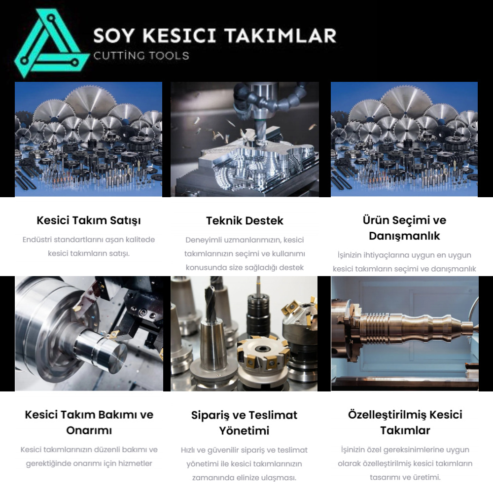 Soy Kesici Takımlar olarak, müşteri memnuniyetini ve iş kalitesini her zaman ön planda tutuyoruz. Ürün yelpazemizdeki her bir kesici takım ve alet, endüstri standartlarına uygun olarak titizlikle seçilmiş ve test edilmiştir. Müşterilerimize yüksek performanslı ve dayanıklı ürünler sunarak, işlerinde kesintisiz bir çalışma deneyimi yaşamalarını sağlıyoruz.