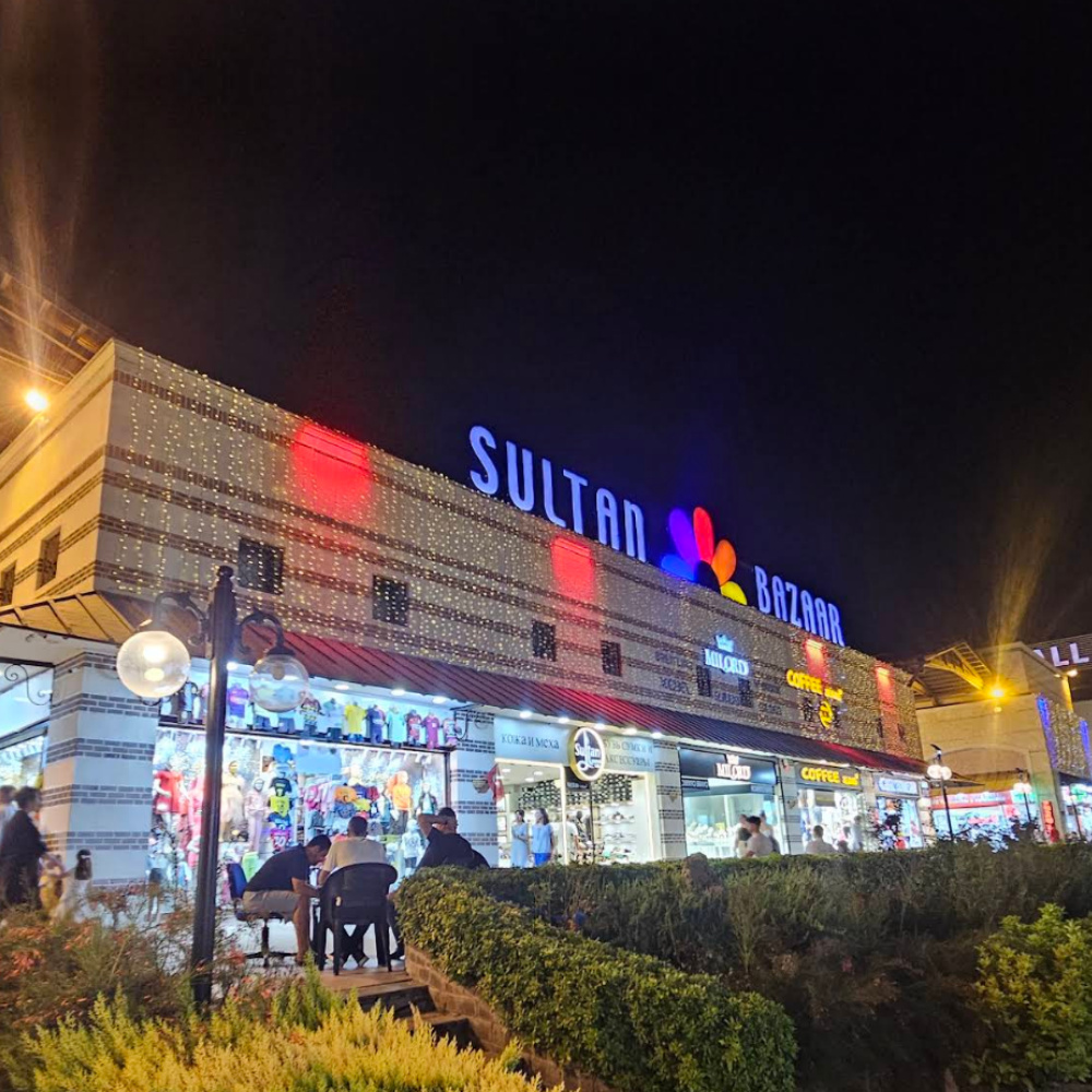 Yerel mağazalar ve hizmetlerin yanı sıra çocuklar için açık oyun alanının bulunduğu, rahat açık hava alışveriş merkezi.