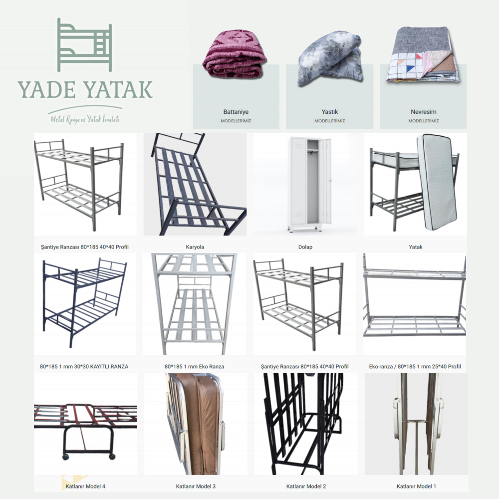 Kurucumuz, 20 yılı aşkın sektör tecrübesiyle bahçe salıncakları, katlanır metal ayak ve sandalye imalatıyla başladığı serüvene, 2010 yılından itibaren metal ranza, yurt ranzası, karyola ve yatak üretimiyle devam etmiştir. 2000 m² üretim alanı, 1000 m² depo ve 2000 m² otopark ile müşterilerimize kaliteli hizmet sunmaktayız. Doğal afetler ve mülteci konaklamaları gibi acil barınma ihtiyaçlarında hızlı ve güvenilir çözümler üreterek yurt içi ve yurt dışında faaliyet göstermekteyiz. Etik, güvenilir ve yenilikçi yaklaşımımızla sürdürülebilir ve işletilebilir çözümler sunmayı ilke ediniyoruz.